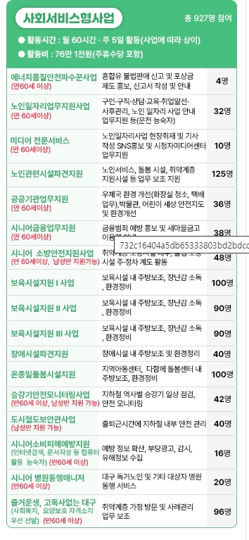 대구수성구 시니어클럽에서 900명 정도 모집하기 때문에 기회가 많습니다.